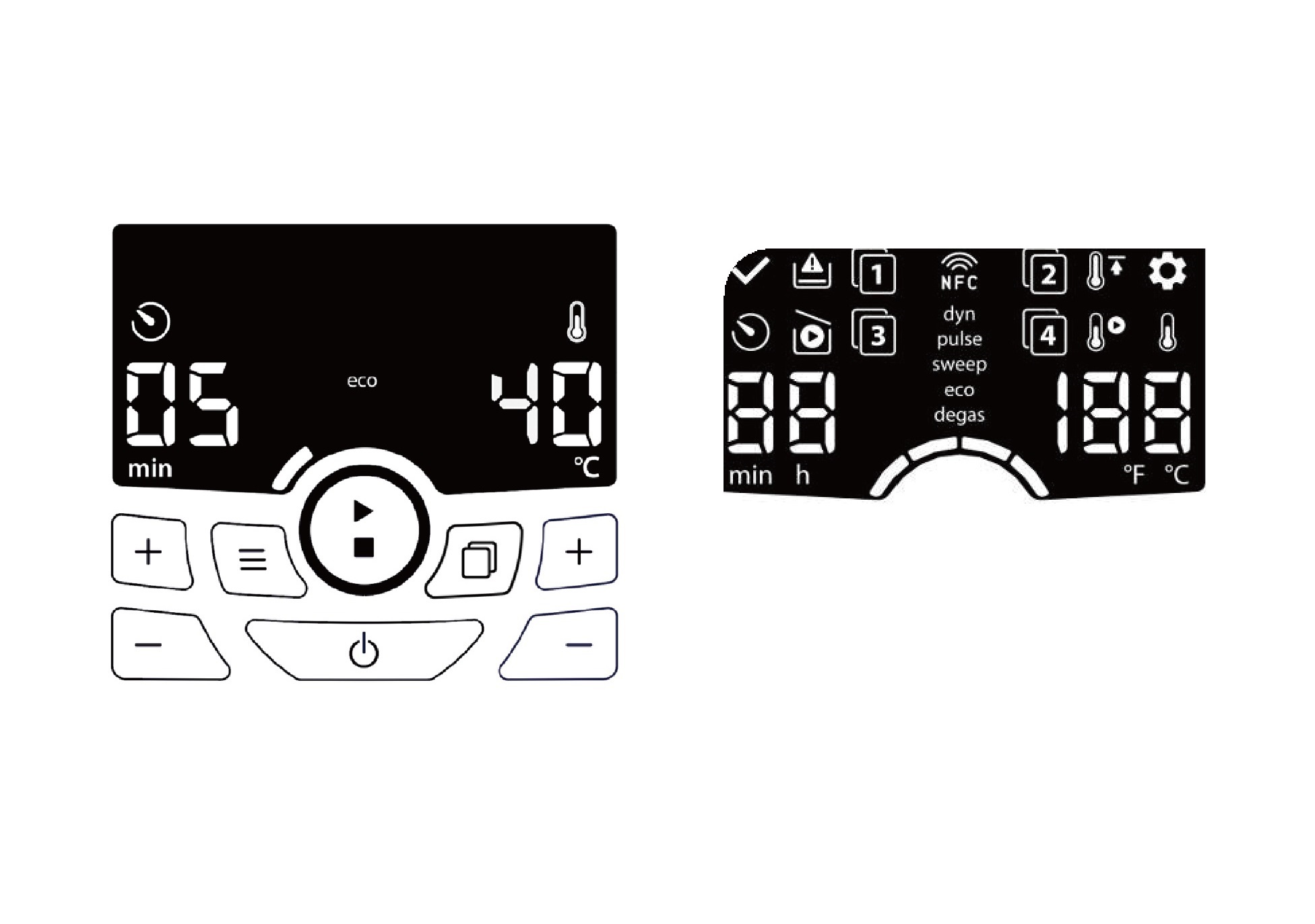 數(shù)字顯示屏,清晰易讀,顯示所有相關(guān)參數(shù),如剩余清洗時間、設(shè)定和實際溫度
