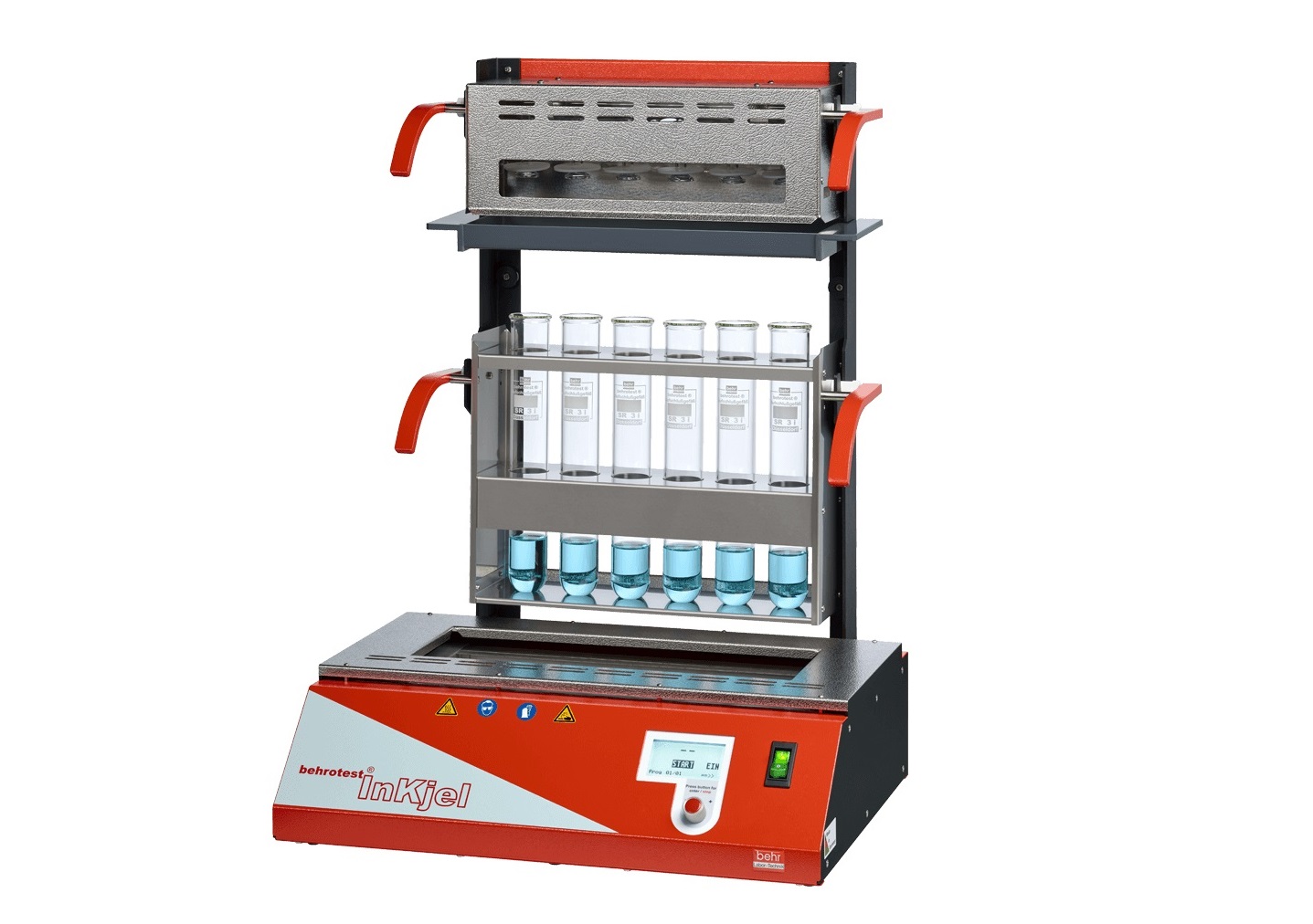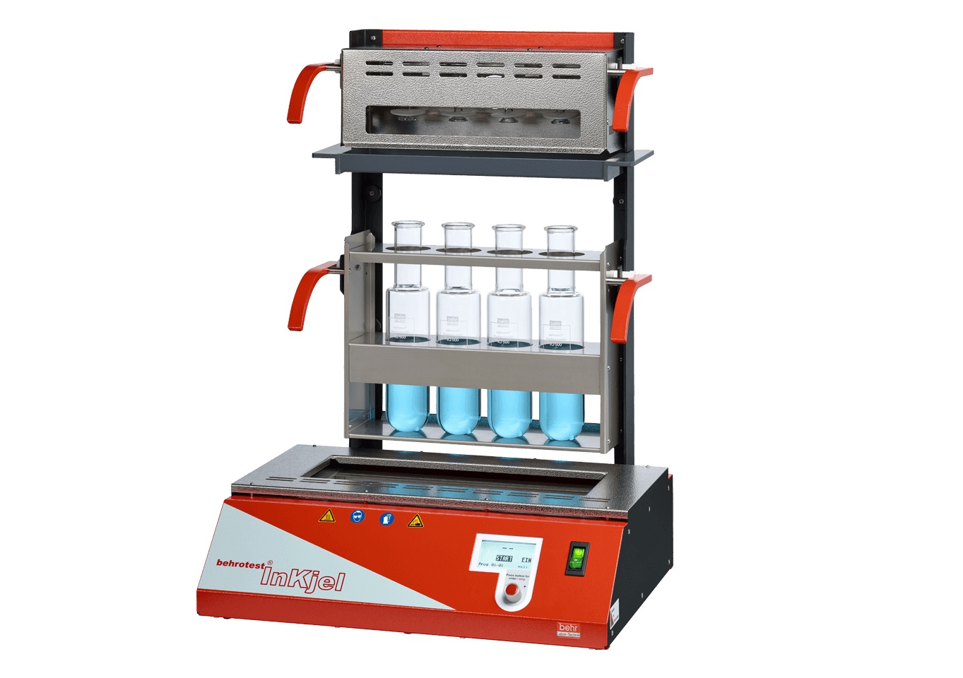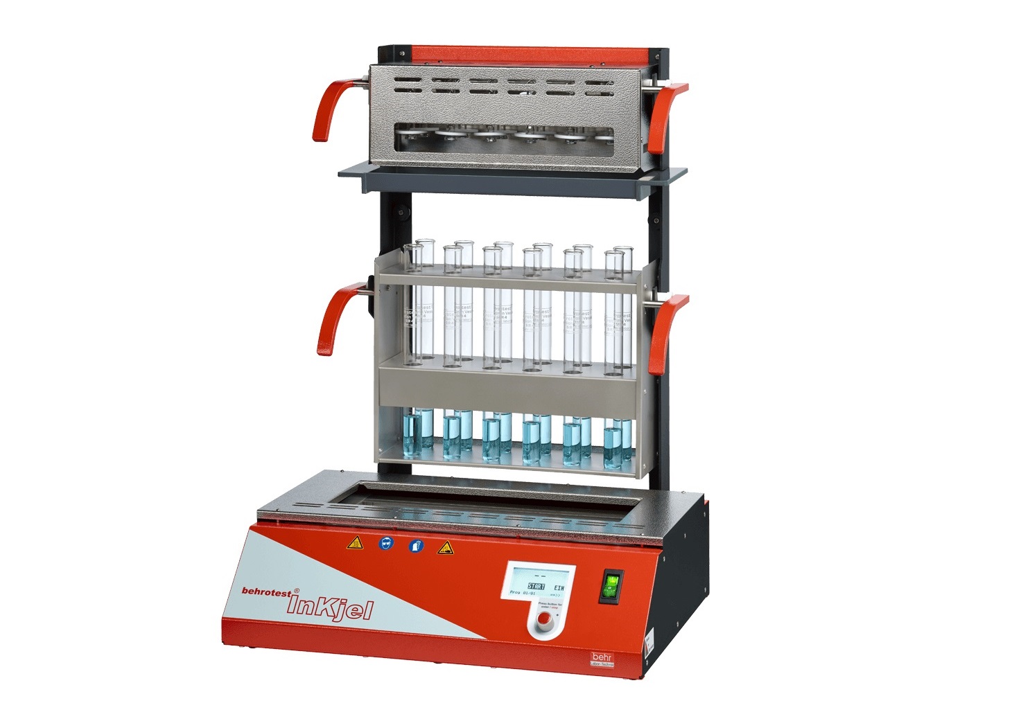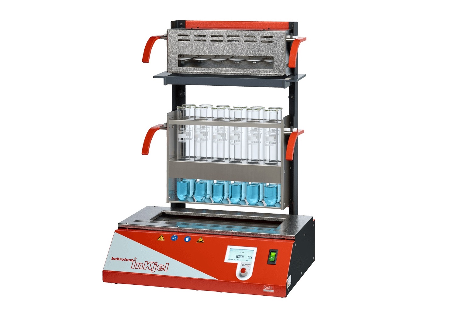 德國behr貝爾 behrotest?InKjel P系列紅外消化系統,是一款可預設程序的高效消化系統,配備了紅外線加熱裝置和液晶微電腦控制器,加熱主體采用了石英玻璃管,耐強酸強堿,升溫時間快,加熱樣品至410°C,僅需10分鐘,通過紅外加熱組件直接對消化管兩側加熱,使樣品消解徹底、灰化均勻,消化管單排或雙排懸掛于樣品槽中,不與加熱體的底部接觸,大大降低管體破裂風險,消化管架由不銹鋼材料制成,兩側帶有絕緣隔熱手柄。